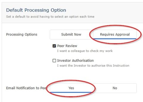 - Peer Review: If you regularly assign peer-reviewed instructions you can now set a preference to default the ‘Yes’ option when assigning a peer. No more clicking it every time. As a reminder, you can also set a default for the instruction itself to be peer-reviewed. Both settings can be updated in Account Settings (under the head & shoulders icon ) as shown below: